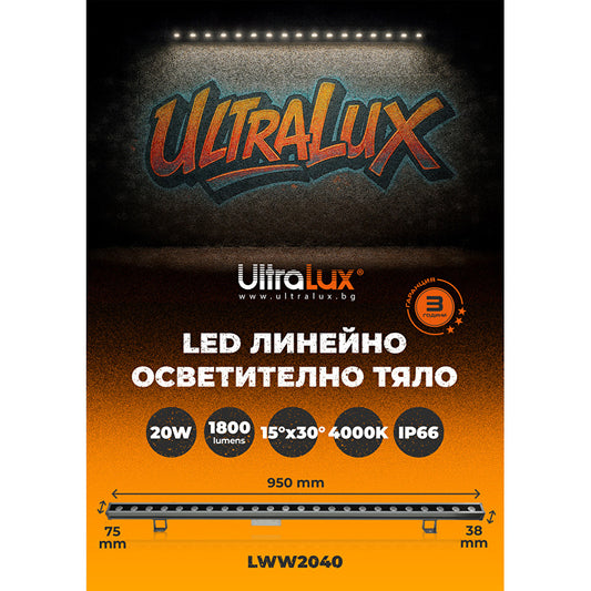 LED линейно осветително тяло 20W, 4000К, 220V-240V AC, 15°x30°, IK08, IP66 / LWW2040