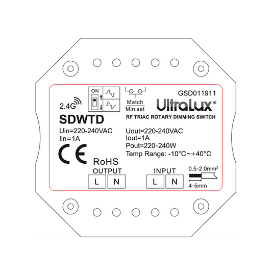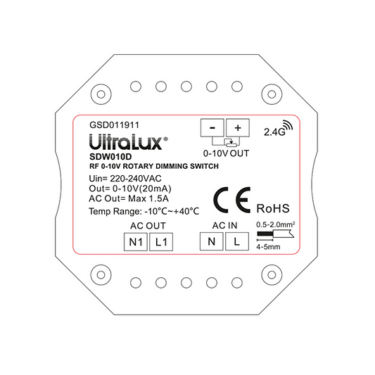 RF 0-10V DC димиращ ключ за стена, 350VA, 1.5A, 220V-240V AC / SDW010DVendor:UltraLuxRegular price 62.86 лв (32.14 €)Regular priceUnit price / per-