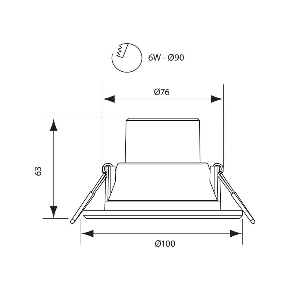 LED луна Ø100 6W, 230V, 4000K, сива, IP44. Серията TOP LED са влагозащитени LED луни за вграждане със степен на защита IP44, което ги прави подходящи за употреба на места с повишено ниво на влажност и запрашеност, за осветление на жилищни помещения, офиси, търговски обекти, хотели и навсякъде, където се цели отлична осветеност.