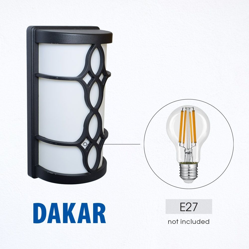 Серията фасадни аплици DAKAR внасят екзотична нотка в осветяваното пространство. Телата са влагозащитени и се предлагат в два актуални цвята: черно и антично злато.