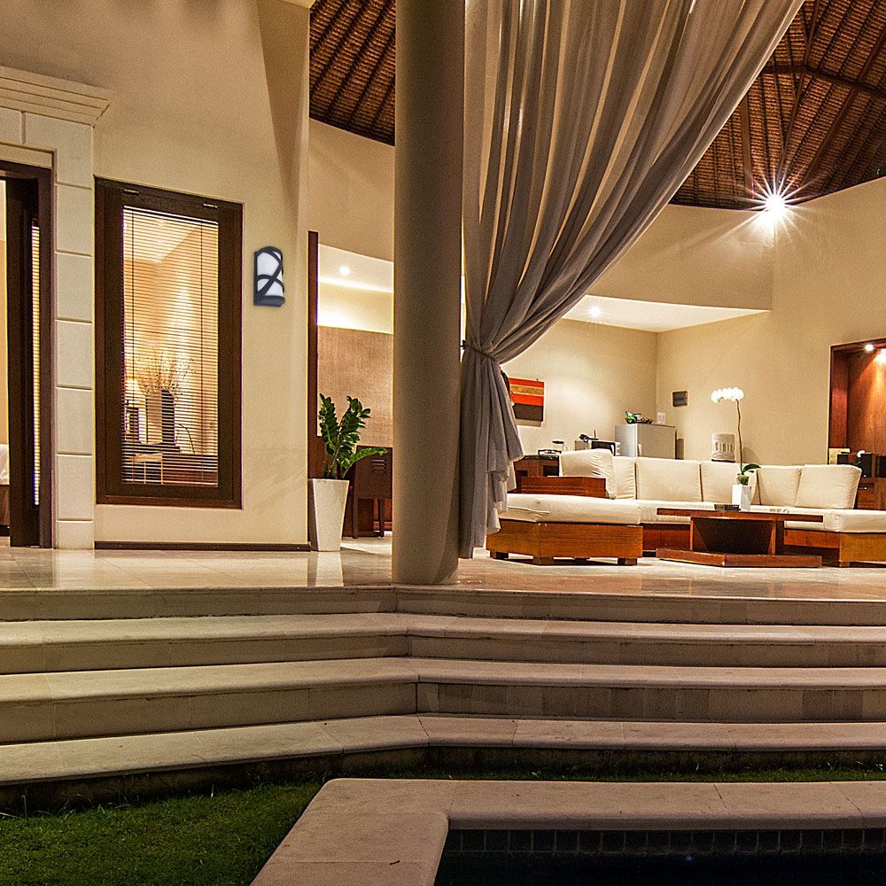 Изисканата елегантност на плафониерите от серията MAUI и модерните цветове на корпуса им ги правят отлично решение за осветление на фасадите на сгради в съвременен стил. Плафониерите са снабдени с фасунги за E27 и дават възможност за избор на мощност и цветна температура на лампата. Фасадно осветително тяло с декоративен елемент в тъмно сив цвят, 1 х Е27, максимум 40W, степен на защита IP44.