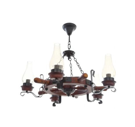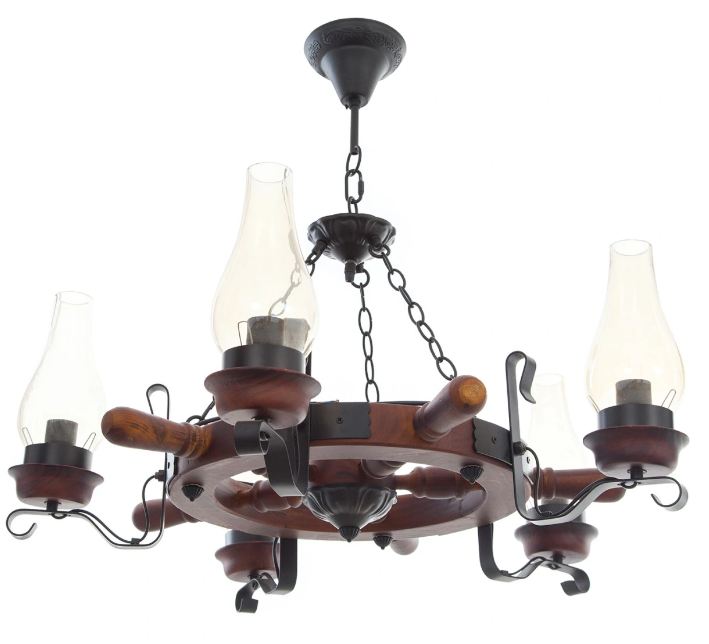Дървен полилей, кафяв, 5x40w, 665/5h