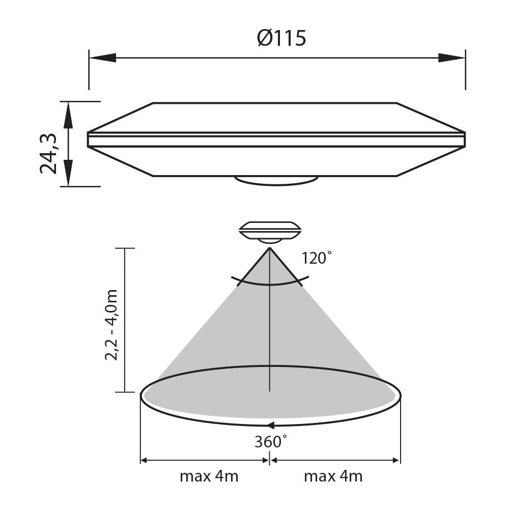 Най-компактният и тънък инфрачервен сензор за движение BRAVO SR 36 е с обхват на действие 360°, зона на отчитане 4 м максимално. BRAVO SR36 е подходящ за употреба в закрити помещения (стълби, коридори, външни части на сгради - гаражи и т.н.). Инфрачервен сензор, max 1000W LED, 360°, 230V.