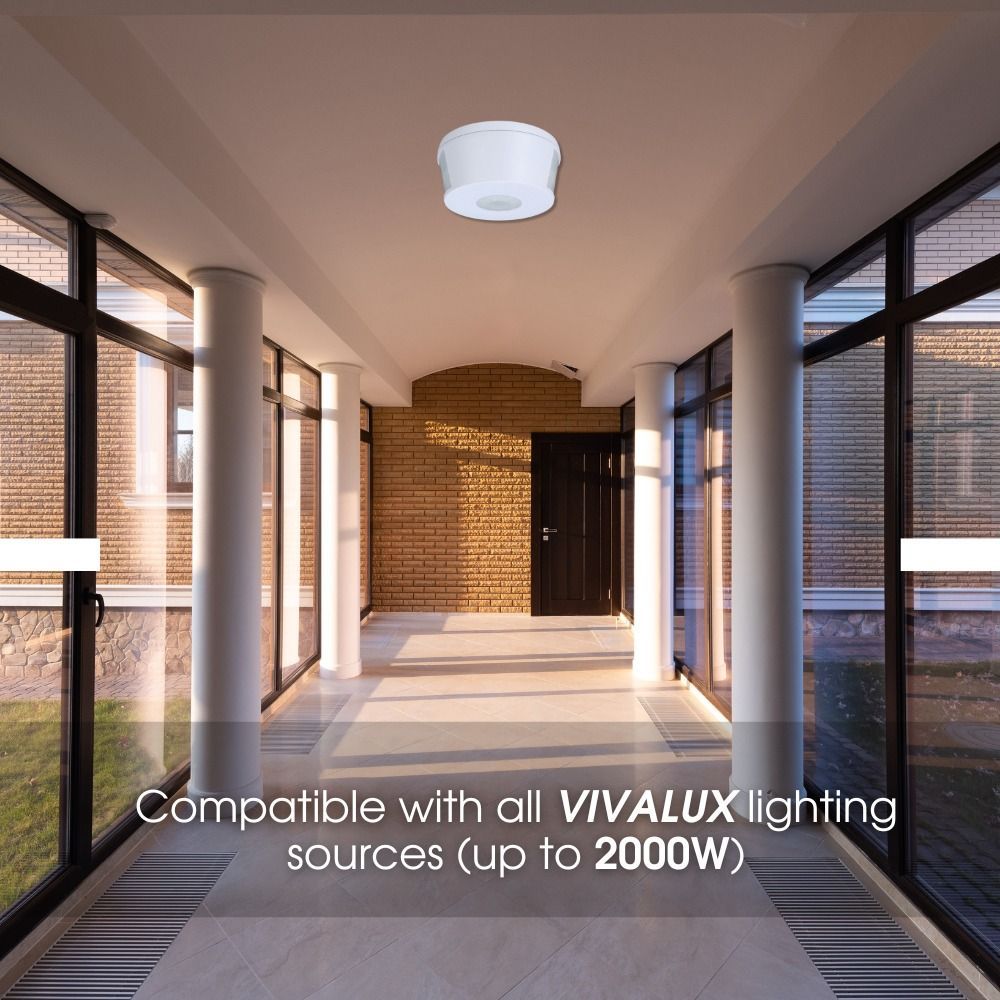 RANGE SR360 е новият инфрачервен сензор за движение в гамата на VIVALUX. Той е с голям обхват – до 30 метра в диаметър и е предназначен за използване за контрол на осветлението в коридори. Сензорът за движение е снабден с плъзгачи, които дават възможност за настройване на работата му: избор на времето за задържане и осветеността, при която сензорът сработва. Допълнително преимущество на RANGE SR36 е, че той може да управлява LED лампи с обща мощност до 2000W.