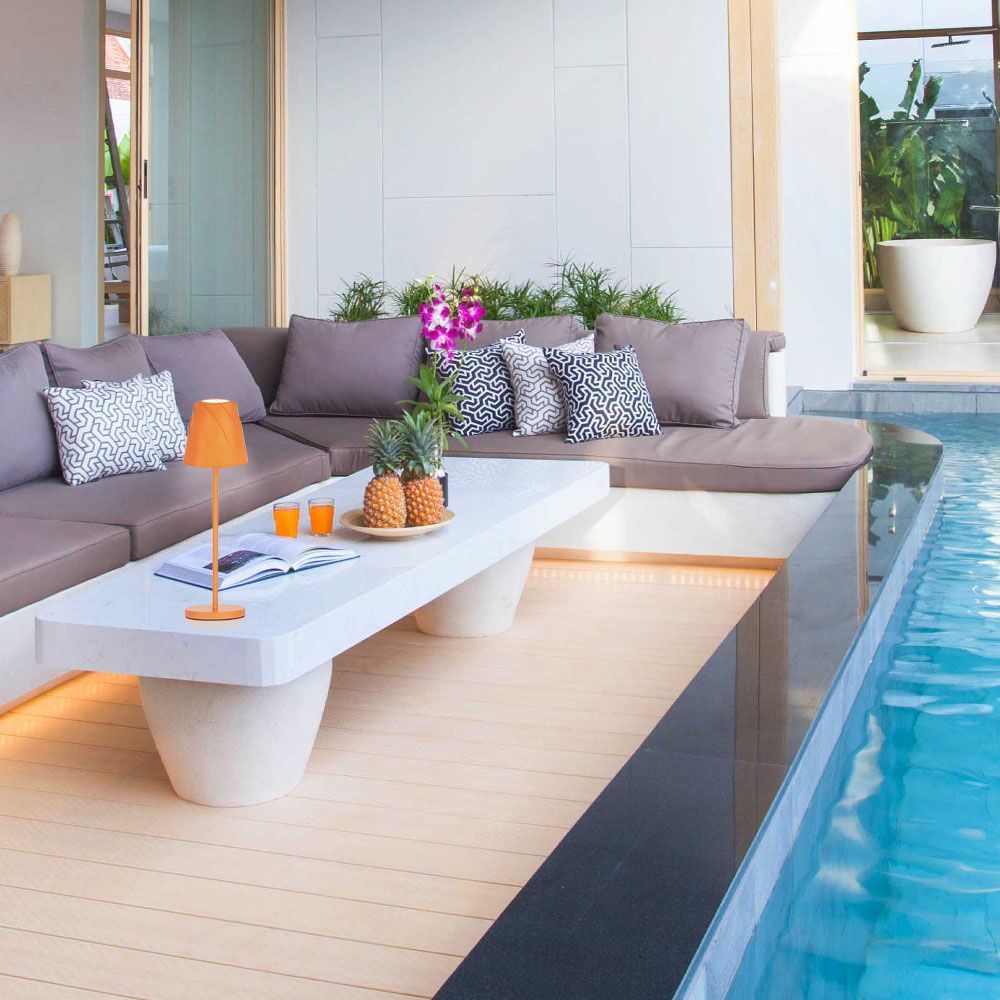 ESTELLA LED е серия настолни лампи с атрактивен дизайн в актуални цветове: жълто, синьо, оранжево и зелено. Снабдени са с презареждащи се батерии и са влагозащитени с IP54, което прави възможно използването им и на открито. Лампите имат тъч-прекъсвач за включване и изключване и за димиране от 100% до 10%. Предлагат се с цветна температура 4000К (неутрална светлина).