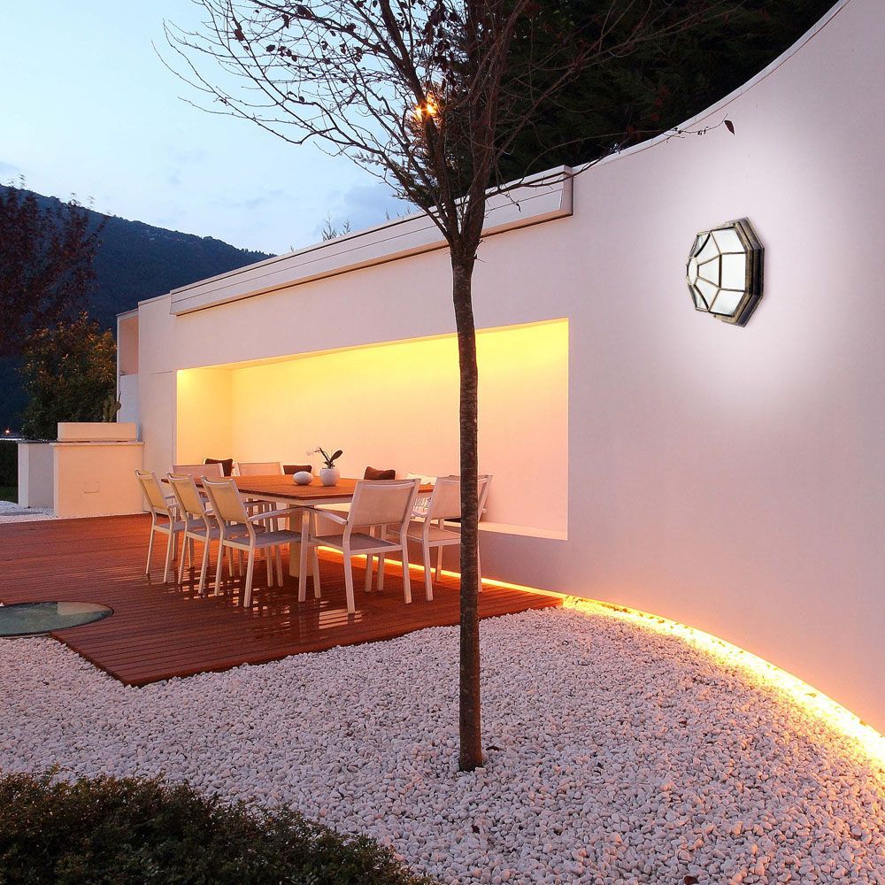 Плафониерата BERLIN е с осемстенен алуминиев корпус и матиран стъклен дифузер, цвят античен месинг. Има степен на защита IP44, фасунга за цокъл Е27 и предлага възможност за осветление както на открито, така и в закрити помещения.
