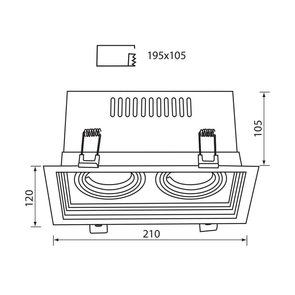 NEXT са серия осветителни тела за вграждане в окачен таван, които могат да се насочват по две перпендикулярни оси. Подвижна луна за вграждане NEXT KD212 W, 2 x GU10, монтажен отвор: 210 x 105 mm, IP20.