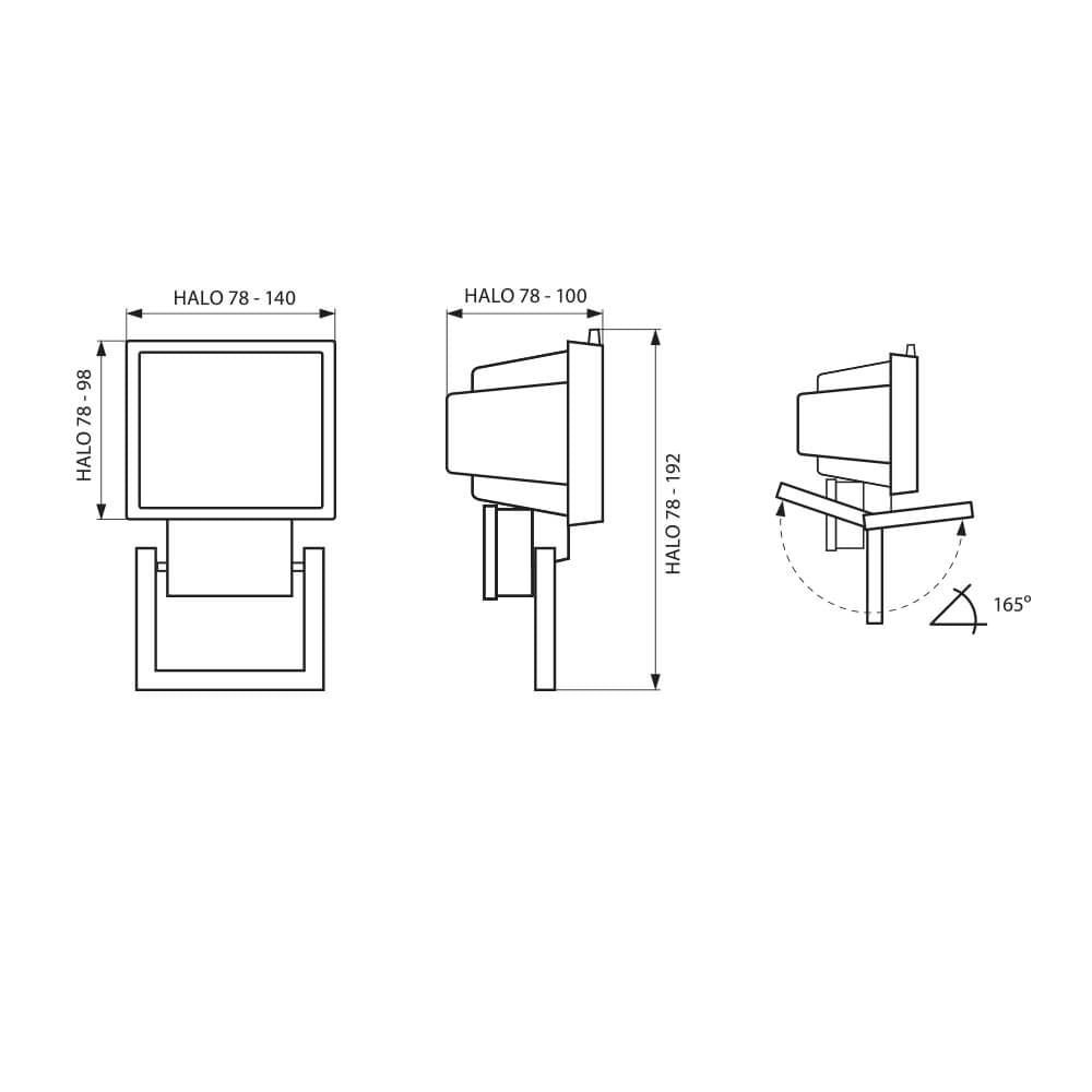Прожектор за халогенни лампи, max 150W, 230V, бял. Степен на прахо и влагозащита IP44. Подходящ за вътрешно и външно осветление - бизнес сгради, складове, витрини, рекламни надписи, магазини и заведения, и др.