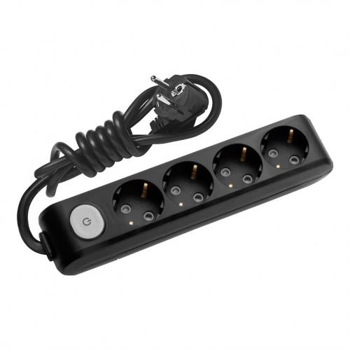 Разклонител Панасоник четворка с 3 м кабел+ключ черен WLTA0443-2BL