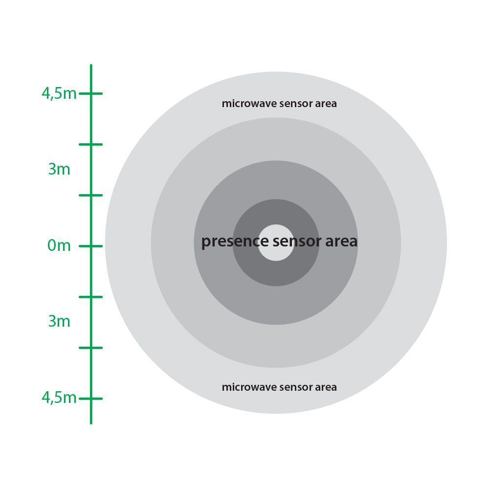 Когато е необходима светлина в определена зона за времето, в което там има хора, най-удачното решение е да се инсталира истински сензор за присъствие HABITO HF36-W с марка VIVALUX. Той излъчва ултразвукови вълни с висока честота, които създават поле с радиус 3 метра в обхвата на сензора, представляваща зоната му на действие като сензор за присъствие. При наличие на движение в така създаденото поле, сензорът HABITO HF36-W се задейства и включва свързаните към него светлинни източници. Той засича човешкото вдишване и така ги задържа светнати. Отвъд зоната на присъствие до края на обхвата на HABITO HF36-W, той работи като микровълнов сензор за движение.