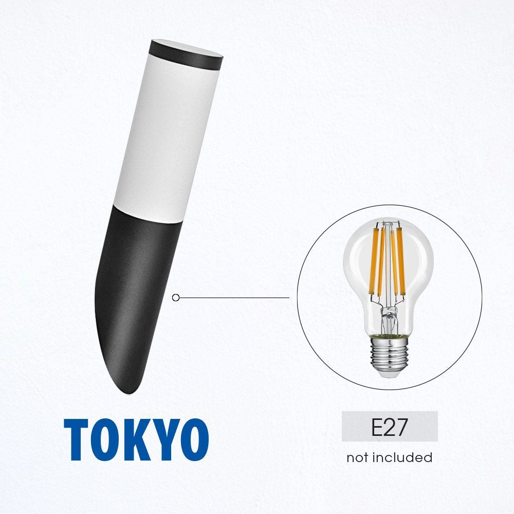 TOKYO е серия градински осветителни тела с корпус от неръждаема стомана и с модерна изчистена линия в цвят никел мат или черно. Серията съдържа фасаден аплик и две градински осветителни тела за монтаж на земя с различна височина. Подходящи са за лампи с цокъл E27.