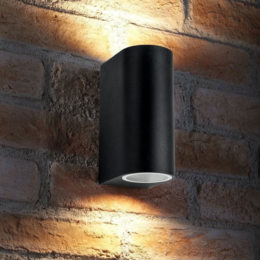 Фасадно осветително тяло PORTO/R 2 x GU10 BK IP44, черен матиран корпус от лят алуминий, заоблена форма. Фасунга GU10, максимално натоварване 2 х 35W, степен на защита IP44.