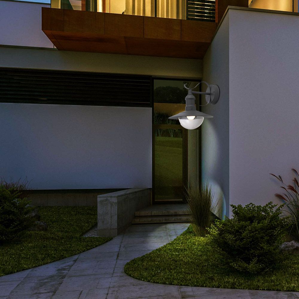 Стенен фенер RIVIERA с горен носач WD010/GR, 230V, тъмносив. Серията фенери RIVIERA са с дизайн в средиземноморски стил и се предлага в три цвята на корпуса: бяло със злато, тъмносиво и античен месинг. Моделите в серията са с възможност за монтаж на стена или за окачване и са съвместими с лампи с цокъл Е27.