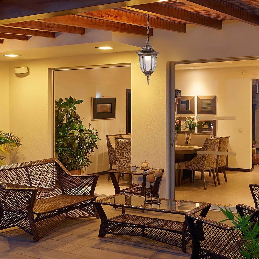 Фенер, алувиниев корпус, цвят античен месинг, стъклени стени, шестстенен, за окачване върху таван, в комплект с пендел, фасунга E27, степен на защита IP44, общата дължина на тялото е 1100 мм. Максималното натоварване е 1 х 60W за лампи с нажежаема жичка.