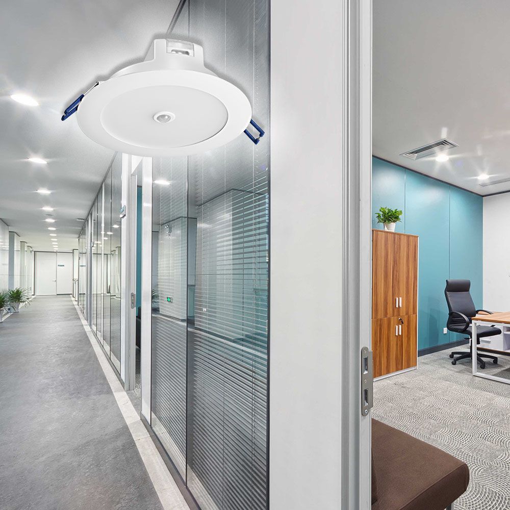 LED луна за вграждане DION LED с интегриран инфрачервен сензор за движение, размер Ø140 mm, мощност 11W.