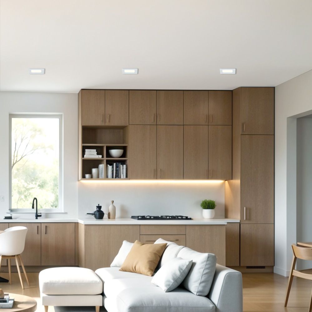 Серията квадратни LED луни за вграждане KAPI LED са влагозащитени с IP54 и имат вграден плъзгач за избор на цветна температура, в която да светят: 3000К (топло-бяла светлина), 4000К (неутрална светлина) или 6400К (дневна светлина). Тези предимства дават възможност за свобода при избора на приложение на луните от серията. KAPI LED се предлагат в 5 размера със съответните мощности: 5W, 9W, 12W, 18W и 24W.