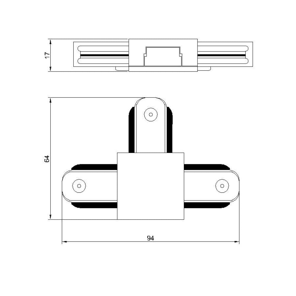 Т-конектор за релса, черен цвят. Решаването на осветлението с релсови осветителни системи следва Вашето въображение, а ние предлагаме аксесоарите, с които да осъществите идеята си - монтирайте избраните спотове или прожектори на релси с дължина 1 метър или 2 метра; свържете релсите с помощта на конекторите (I, L, T, X).
