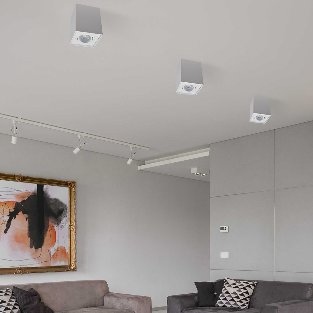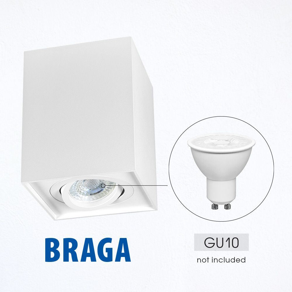 Квадратна луна за външен монтаж, 96 x 96 x 125, 230V, GU10, бяла. Възможността за насочване на светлинния сноп в желаната посока прави луните BRAGA подходящи както за основно, така и за акцентиращо осветление.