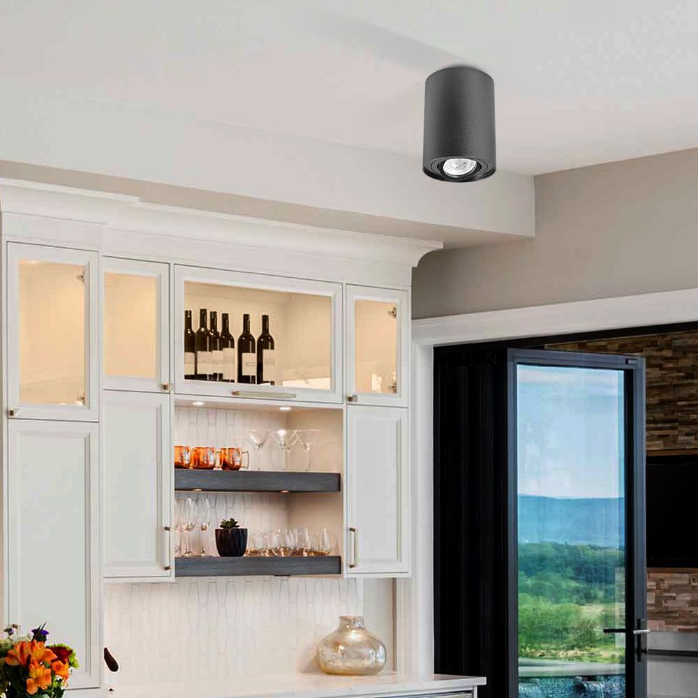 Кръгла луна за външен монтаж Ø95 x 125, 230V, GU10, черна. Възможността за насочване на светлинния сноп в желаната посока прави луните TOLEDO подходящи както за основно, така и за акцентиращо осветление.