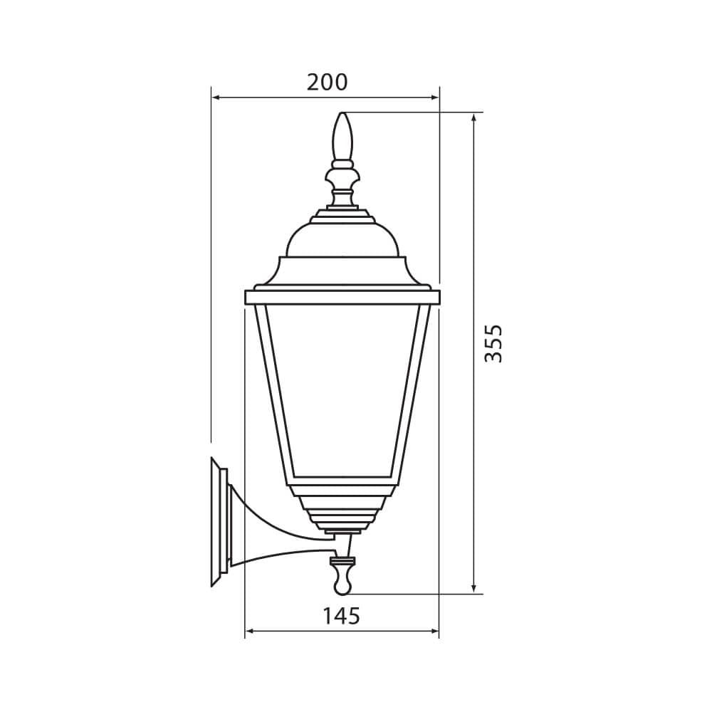 Фенер с класическа четиристенна форма, алуминиев корпус, цвят античен месинг, стъклени стени, с долен носач, фасунга E27 и степен на защита IP44. Максималното натоварване е 1 х 60W за лампи с нажежаема жичка.