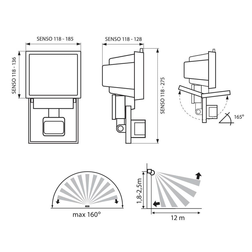 ПРОЖЕКТОР SENSO ∙ С ДАТЧИК ЗА ДВИЖЕНИЕ ∙ 118 ММ ∙ БЯЛ ∙ IP44 / 002868
