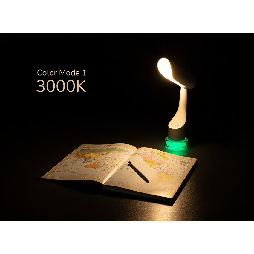 Светодиодна настолна лампа с вградена Li-Ion батерия. Тялото е с обща мощност 7W, иновативен дизайн, с възможност за промяна типа на светлината, разполага с функция димиране и има следните предимства: