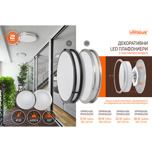 Декоративна LED плафониера 18W, 4200K, 220-240V AC, черна, кръг, IP20 / SPMR1842BL