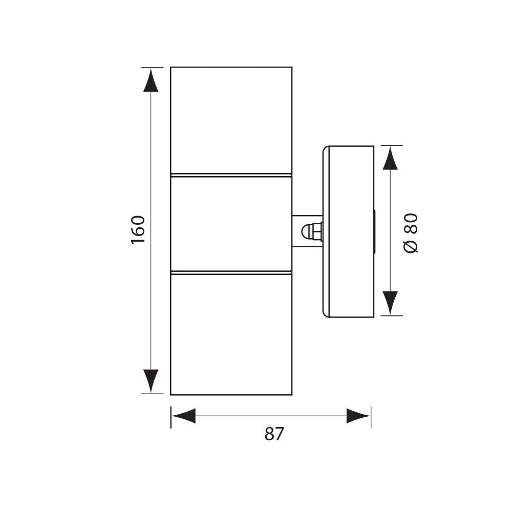 Фасадно осветително тяло GRENADA 2 x GU10 N/M IP44, аплик с цилиндрична форма от неръждаема стомана, фасунга за лампа GU10, максимално натоварване 2 х 35W. Степен на защита IP44.