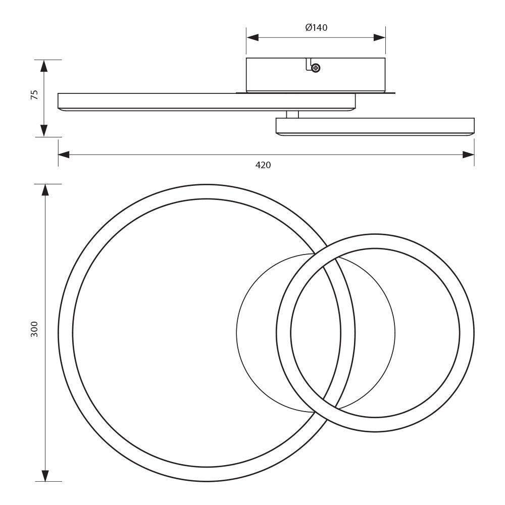 ZION LED е серия от две осветителни тела с една и съща форма, но едното е в черен цвят, а другото – в цвят алуминий. Светещите им части са във форма на голям и малък кръг и правят телата ZION LED атрактивно решение за интериорно осветление.
