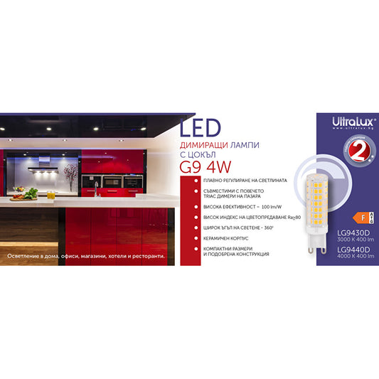LED лампа димираща 4W, G9, 3000K, 220V-240V AC, топла светлина, SMD2835, 1 бр. / блистер Арт. № LG9430D