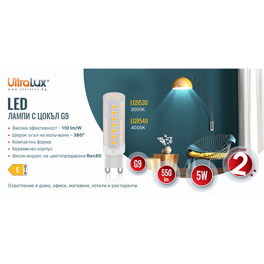 LED лампа 5W, G9, 3000K, 220V-240V AC, топла светлина, SMD2835, 1 бр. / блистер /LG9530